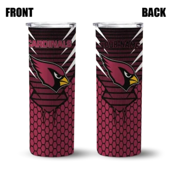 The Custom Arizona Cardinals Claw Cut Red Black Curved Tumbler is designed to keep your drinks hot for up to 12 hours or cold for 24, offering both quality and practicality. Featuring a durable stainless steel body and a bold, vibrant team logo, it’s the perfect accessory for fans who want to stay refreshed while proudly representing their team. Inside the box, you’ll find 1 stainless steel tumbler, 1 clear spill-resistant lid, and 1 removable straw, making it everything you need to enjoy your drink on the go, all while showing off your team spirit.