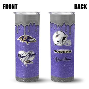 The Customized Baltimore Ravens Heart Helmet Motif Purple Curved Tumbler is designed to keep your drinks hot for up to 12 hours or cold for 24, offering both quality and practicality. Featuring a durable stainless steel body and a bold, vibrant team logo, it’s the perfect accessory for fans who want to stay refreshed while proudly representing their team. Inside the box, you’ll find 1 stainless steel tumbler, 1 clear spill-resistant lid, and 1 removable straw, making it everything you need to enjoy your drink on the go, all while showing off your team spirit.