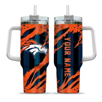 The Custom Denver Broncos Claw Cut Orange Black Curved Tumbler is designed to keep your drinks hot for up to 12 hours or cold for 24, offering both quality and practicality. Featuring a durable stainless steel body and a bold, vibrant team logo, it’s the perfect accessory for fans who want to stay refreshed while proudly representing their team. Inside the box, you’ll find 1 stainless steel tumbler, 1 clear spill-resistant lid, and 1 removable straw, making it everything you need to enjoy your drink on the go, all while showing off your team spirit.