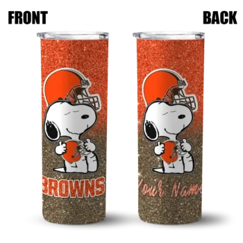 Custom Cleveland Browns Snoopy Dog Brown White Skinny Tumbler $36.95