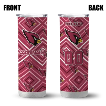 The Custom Arizona Cardinals Claw Cut Red Black Curved Tumbler is designed to keep your drinks hot for up to 12 hours or cold for 24, offering both quality and practicality. Featuring a durable stainless steel body and a bold, vibrant team logo, it’s the perfect accessory for fans who want to stay refreshed while proudly representing their team. Inside the box, you’ll find 1 stainless steel tumbler, 1 clear spill-resistant lid, and 1 removable straw, making it everything you need to enjoy your drink on the go, all while showing off your team spirit.