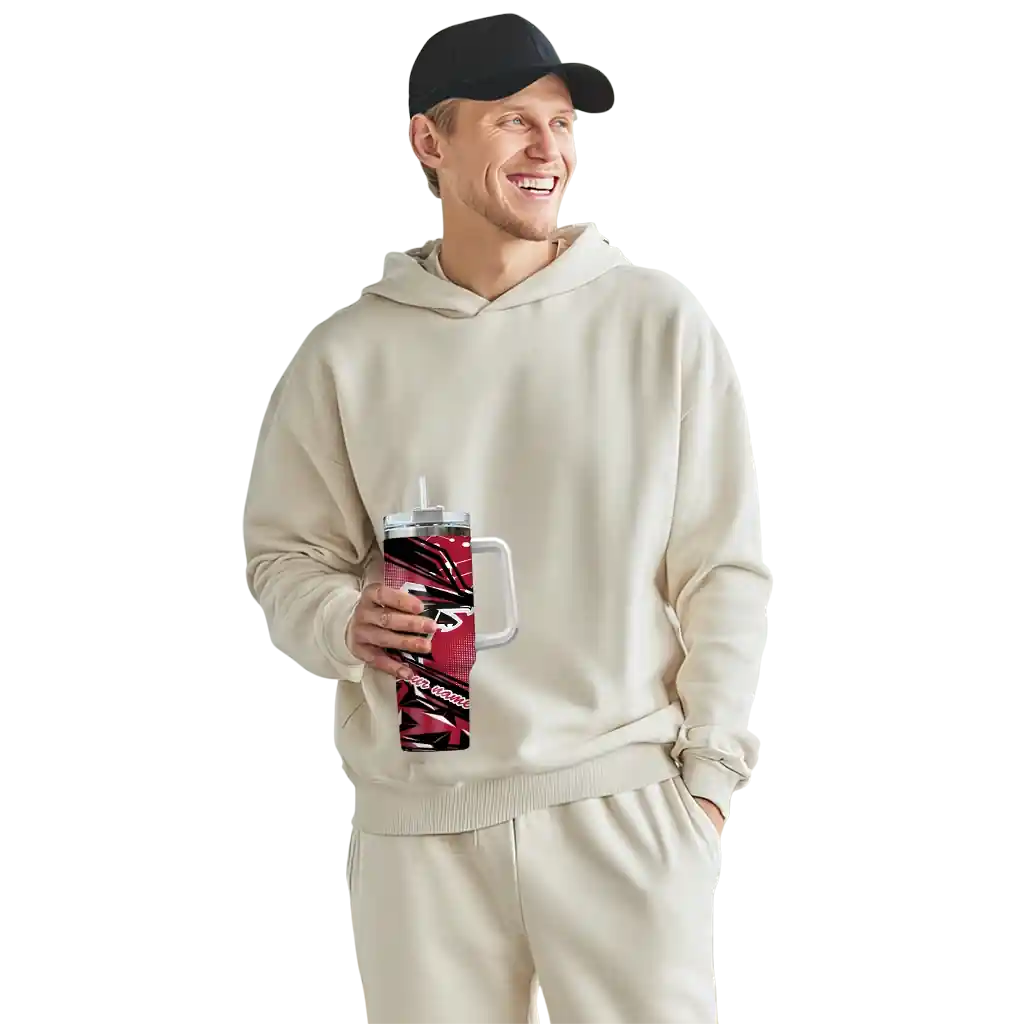 Atlanta Falcons Skinny Tumber – Custom Swirl Texture Red featuring double-wall insulation to keep beverages hot or cold. Designed with a bold team logo and made with premium stainless steel. The sleek design fits comfortably in hand for everyday use, tailgates, or game day events.