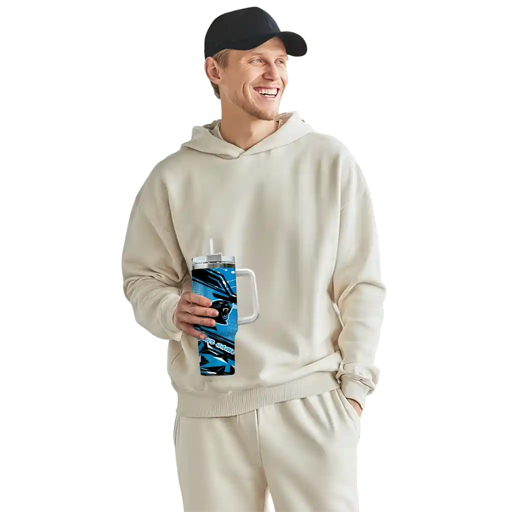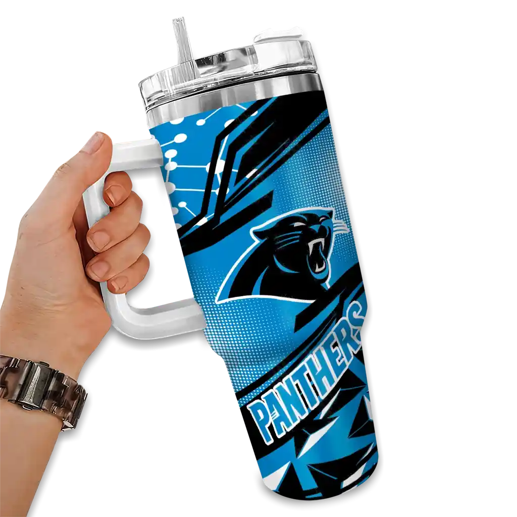 Introducing the Carolina Panthers Tumblers from NFL Fan Pro—a tumbler made for NFL fans who don’t want to miss a moment, even while hydrating. From game day excitement to chilling at home, this tumbler keeps your drinks just right. Double-wall insulation keeps your coffee hot for the early morning tailgate or your iced drink cold through the fourth quarter. With a bold Carolina Panthers logo, this sleek tumbler is a must-have for fans who want to stay refreshed in style. Made with premium stainless steel, it fits perfectly in your hand, making it the ultimate sidekick for every game, tailgate, or hangout. Don’t just watch the game—experience it with every sip.