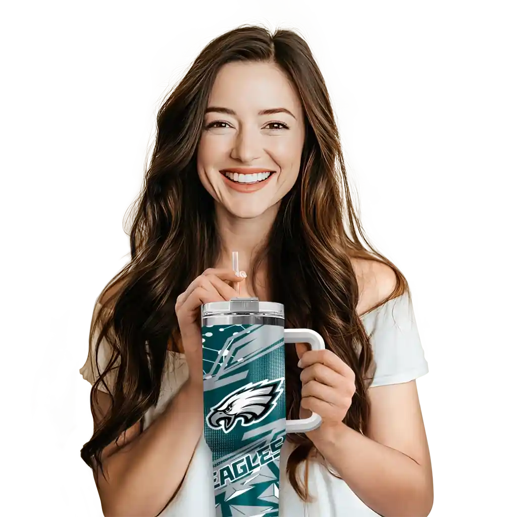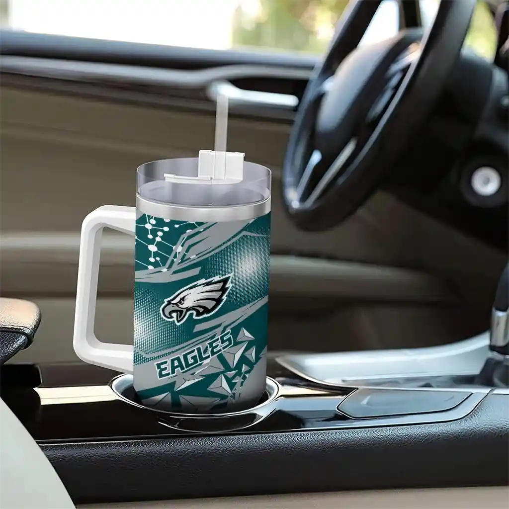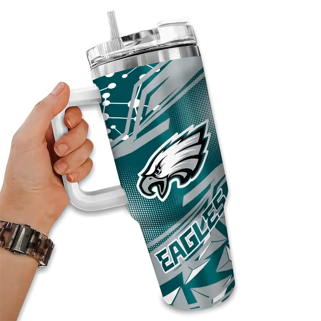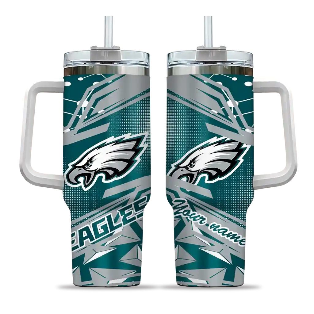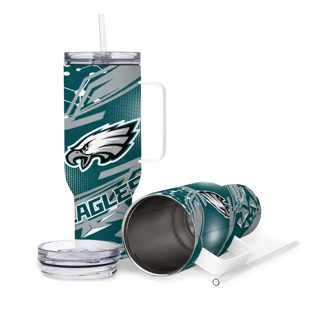 The Philadelphia Eagles Curved Tumber – Custom Abstract Paths Green is designed to keep your drinks hot for up to 12 hours or cold for 24, offering both quality and practicality. Featuring a durable stainless steel body and a bold, vibrant team logo, it’s the perfect accessory for fans who want to stay refreshed while proudly representing their team. Inside the box, you’ll find 1 stainless steel tumbler, 1 clear spill-resistant lid, and 1 removable straw, making it everything you need to enjoy your drink on the go, all while showing off your team spirit.