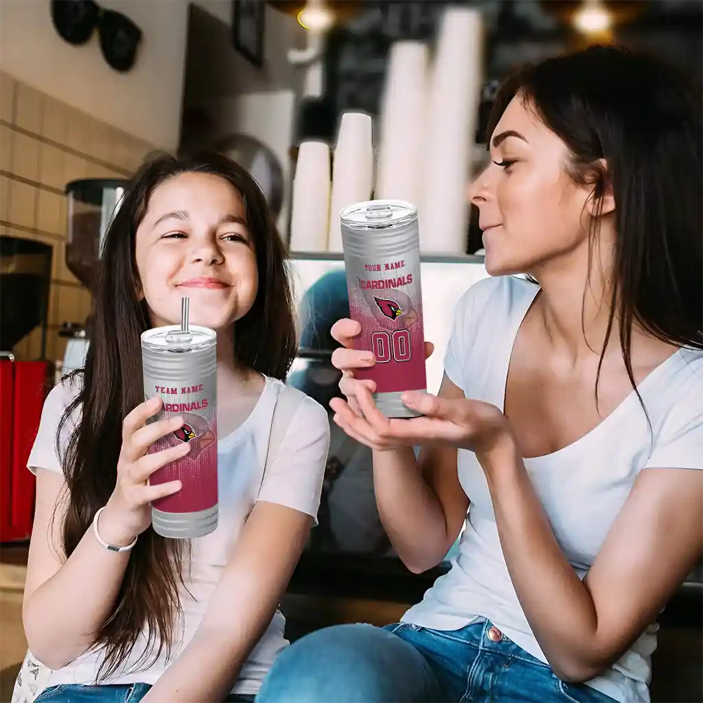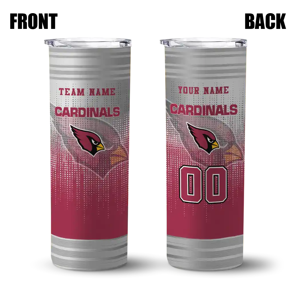 Arizona Cardinals Skinny Tumber – Personalized Swirl Texture Red featuring double-wall insulation to keep beverages hot or cold. Designed with a bold team logo and made with premium stainless steel. The sleek design fits comfortably in hand for everyday use, tailgates, or game day events.
